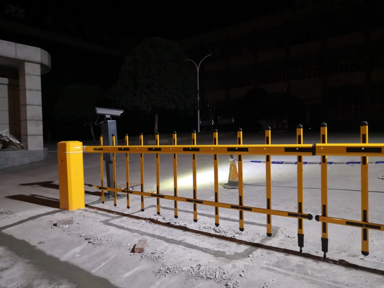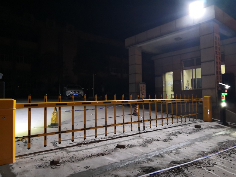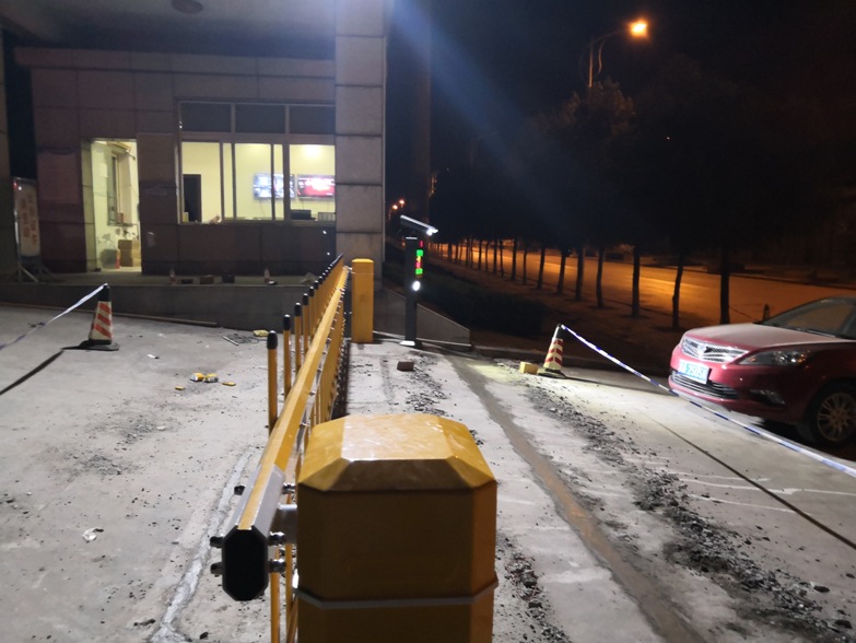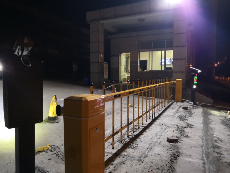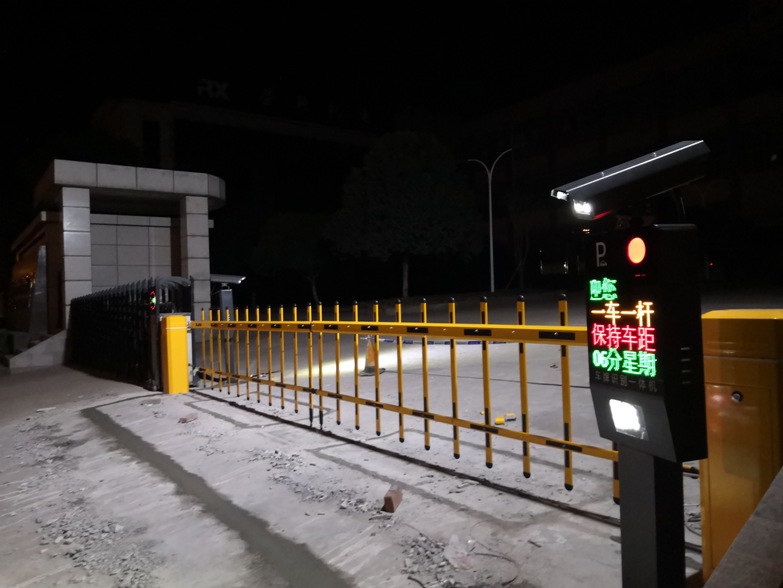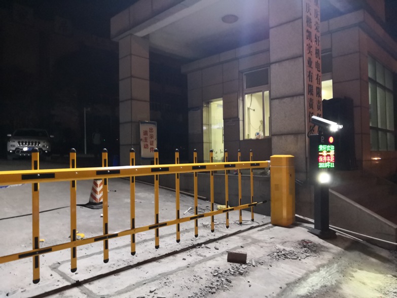 配置车牌识别系统一套;配合伸缩门统一管理内部车辆及临时车辆通行,场内有大车、小车混合通行,采用高灵敏车辆检测器。道闸机采用栅栏道闸机。